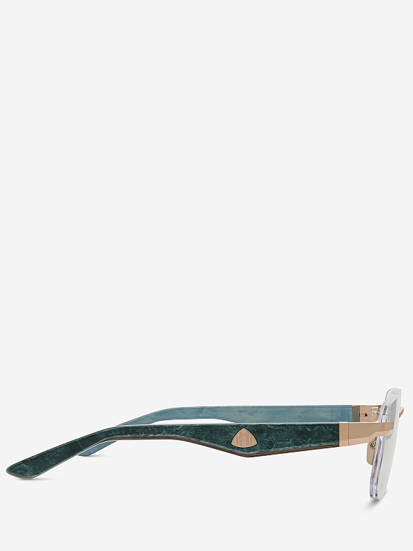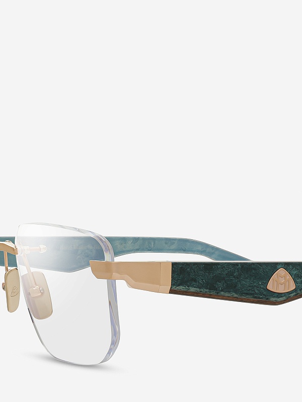 Оправа премиум-класса, изготовленная вручную в фирменной мастерской MAYBACH. Высококачественные материалы: титан с гальваническим покрытием из розового золота и заушники из экзотической породы древесины.