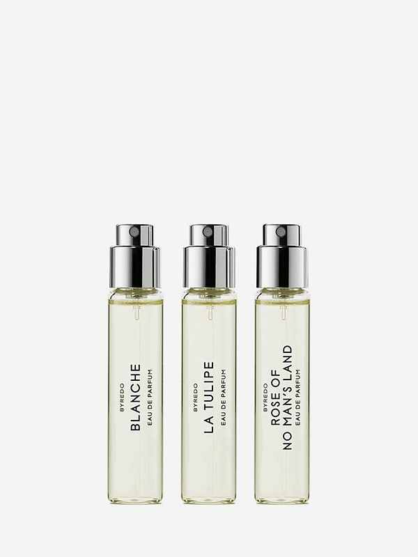 La Sélection Florale – это трэвел-набор с тремя культовыми цветочными ароматами BYREDO: Blanche, La Tulipe and Rose of No Man's Land, представленными во флаконах 12 мл, которые идеально подходят для того, чтобы носить с собой.